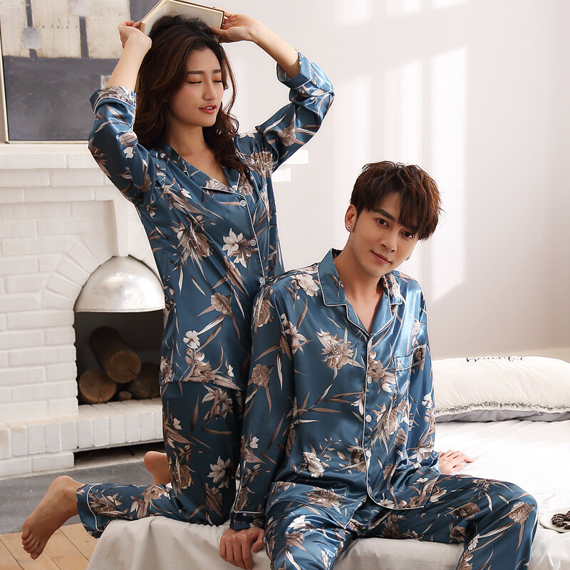 Women Men Silk Satin Homewear Pyjamas Set Couple Sleepwear Family Nightwear Pjs