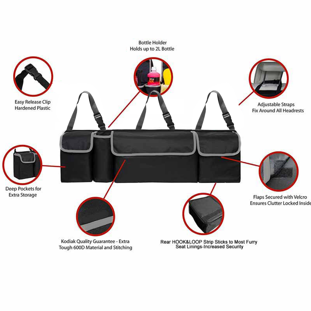 -Fully adjustable headrest straps - suitable for all vehicles.