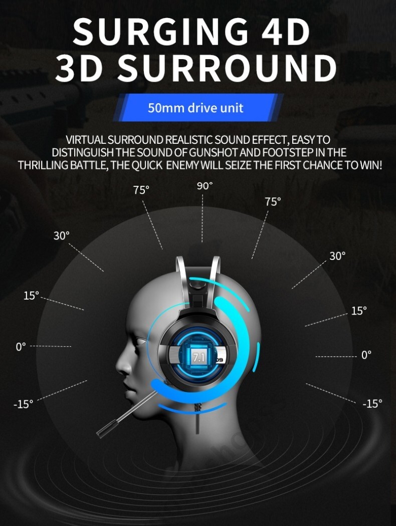 High precision 50mm magnetic neodymium driver, bring you vivid sound field, sound clarity, sound shock feeling, capable of various games.