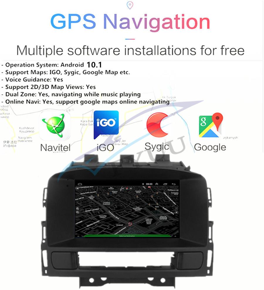 GPS | - Operation System: Android 10.1 - Support Maps: IGO, Sygic, Google Map etc. - Voice Guidance: Yes - Support 2D/3D Map Views: Yes - Dual Zone: Yes, navigating while music playing - Online Navi: Yes, support google maps online navigating |