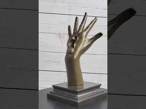 This work of art is fantastic down to the last intricate detail. Every line is crafted to perfection, from the fingers to the fingernails and the subtle hand cuts. What makes this sculpture truly unique is the ear sticking out of the statue's hand, adding an intriguing and unconventional element to the piece.