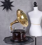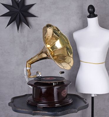 Con un Altura total de aprox. 65 cm (incl. embudo) y una anchura y profundidad de aprox. Con 37 cm, el gramófono es a la vez un práctico dispositivo de juego y un impresionante atractivo. Ya sea en el salón, en la sala de música, en la entrada o en un elegante restaurante, este gramófono vintage atraerá todas las miradas y será un tema de conversación.