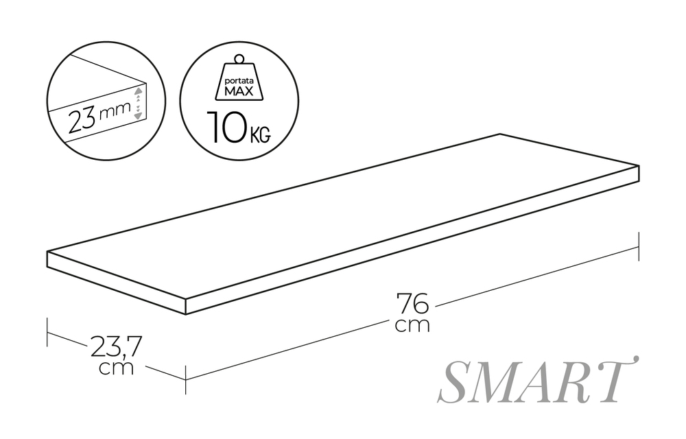 - Qualità certificata: 2,2 cm di spessore che garantiscono la robustezza, portata massima di 10 kg per accogliere tutti gli oggetti che desideri.