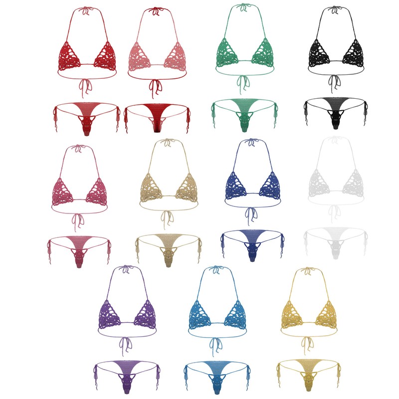 Damen Micro Bikini Set Cutout Bikinioberteil G-String Zweiteiliger Badeanzug