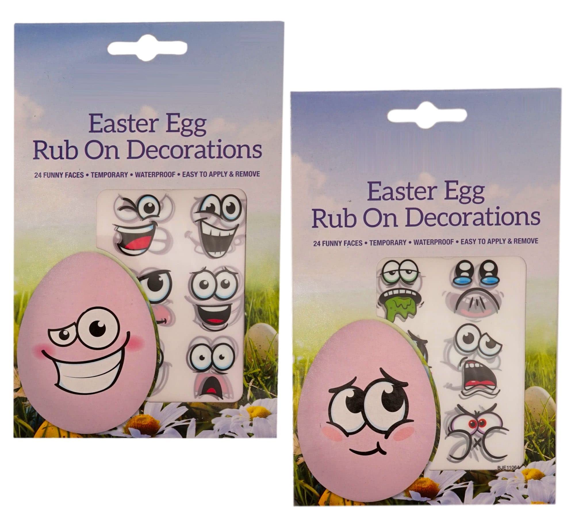 Stickers make Easter egg decoration a breeze! Just peel, stick, rub and you're done! These funny faces wont just be a hit at Easter. Use these cheeky stickers to add funny faces to decorate gifts, journals, craft supplies, and photographs in no time at all. No tape or glue is required.