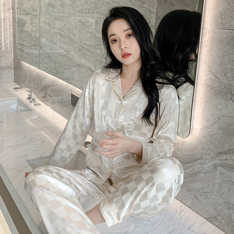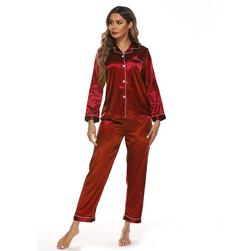 Womens Satin Sleepwear Nightwear Set Ladies Silk Long Sleeve Button Pyjamas PJs