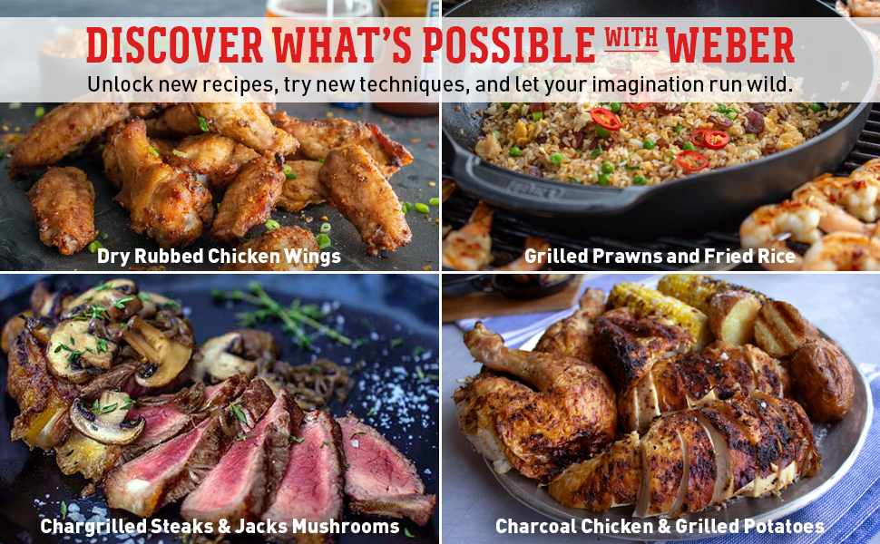 | Product Description | A must-have for serious grill masters, it lights up your fuel quickly and reduces preheat time to 20-25 minutes | Durable storage to keep your charcoal dry, and is easily portable so you can take your charcoal on the road | Protect your hands from heat and easily handle hot objects and food during your on the road grilling adventures | Keep an extra set of tools with your portable Weber BBQ. Includes tongs, a spatula turner and a silicone basting brush | Tough stainless steel bristles and 360° action to keep your BBQ squeaky clean | Easily keep your portable BBQ clean in between grills while on the road |
