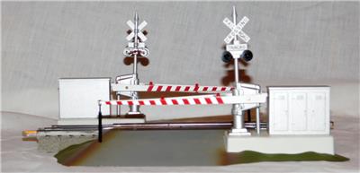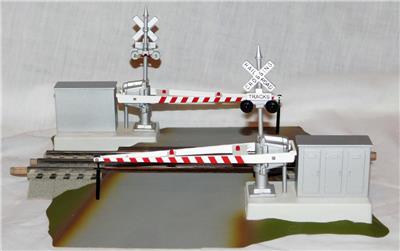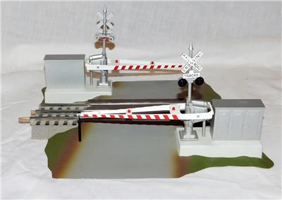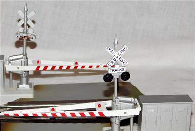 Be safe, look and listen as you approach the railroad crossing! This one has the flashers, the bell sounds and rising and lowering gates. This is simple plug and play right into your layout--an easy way to add lights and sound. However, be sure to be careful putting the crossing posts into the slots--they are really great, but not as thick and tough as the postwar accessories you remember. A super detailed accessory with lots of action.