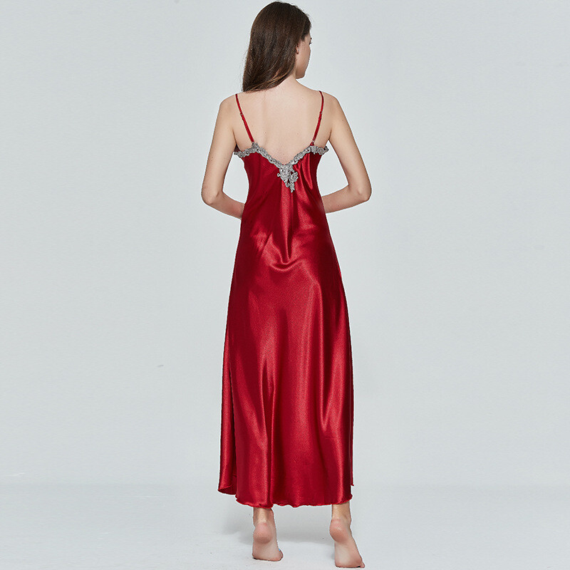 Long Sleepwear Nightdress Women's Silk Nightgowns Lace Satin Chemise Night Robes