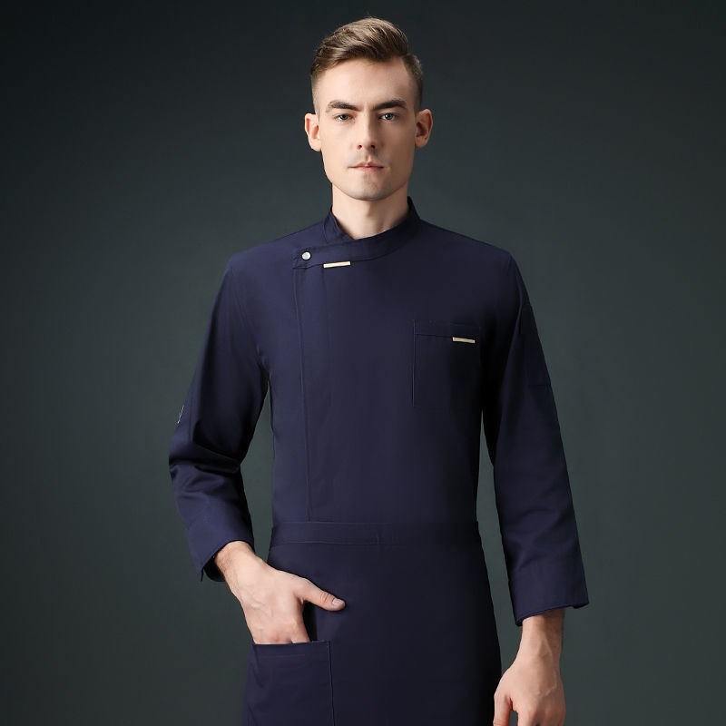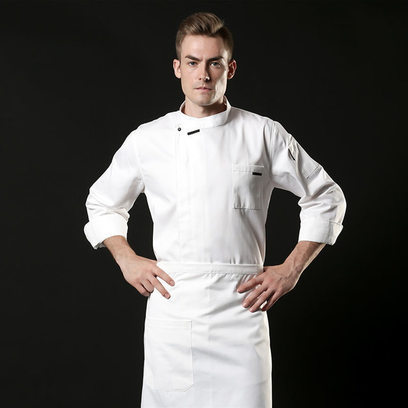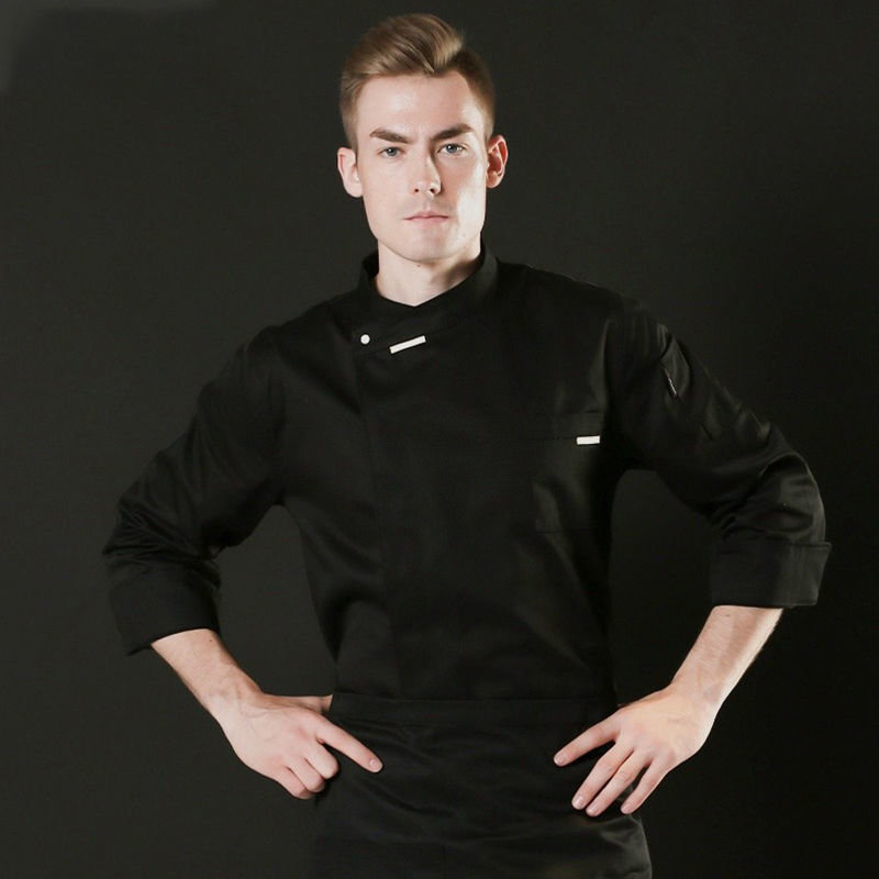 Men Chef Jacket Uniform Long Sleeve Work Cook Kitchen Tops