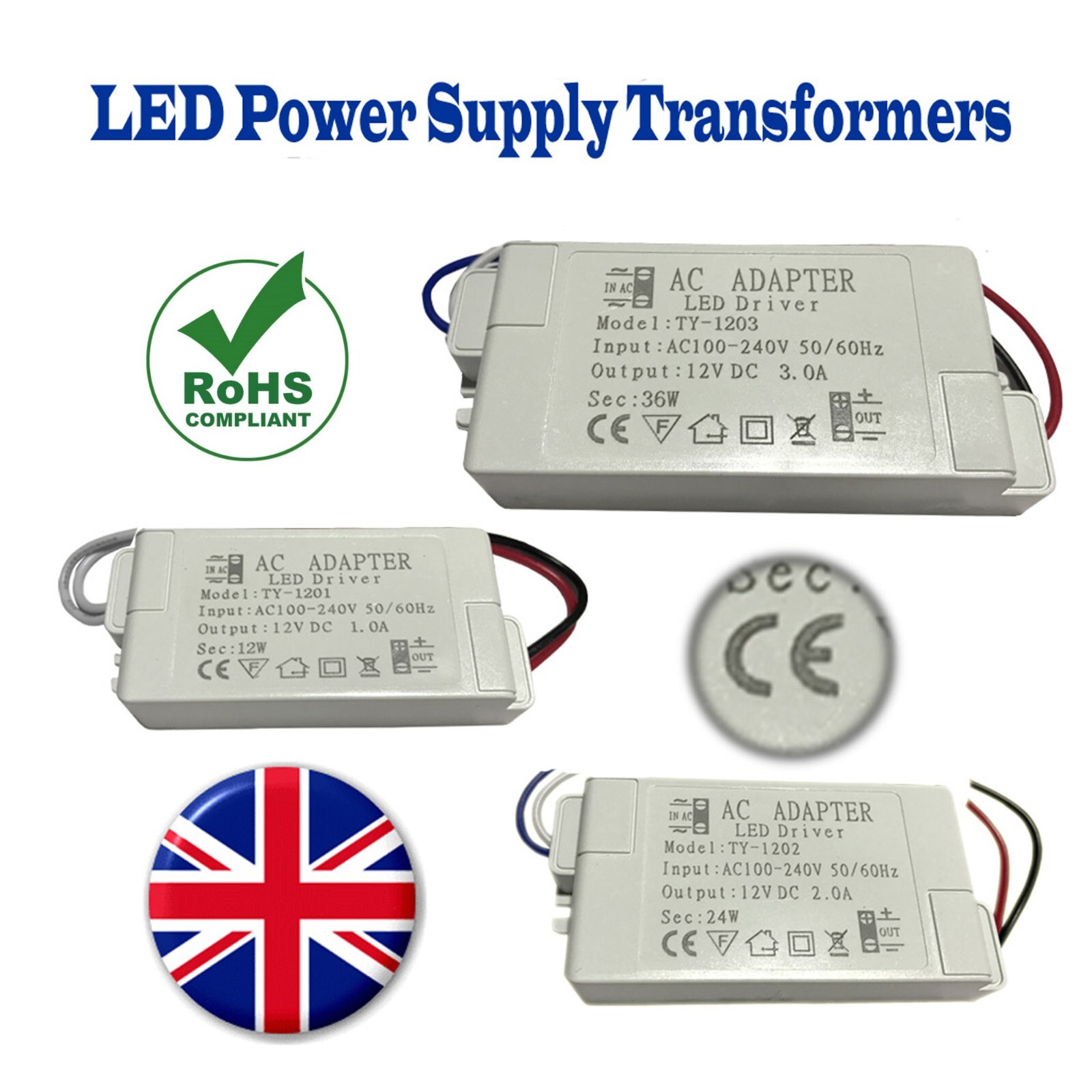 LED Transformer Power Supply DC12V Power Adapter Compact driver 12W/24W/36W
