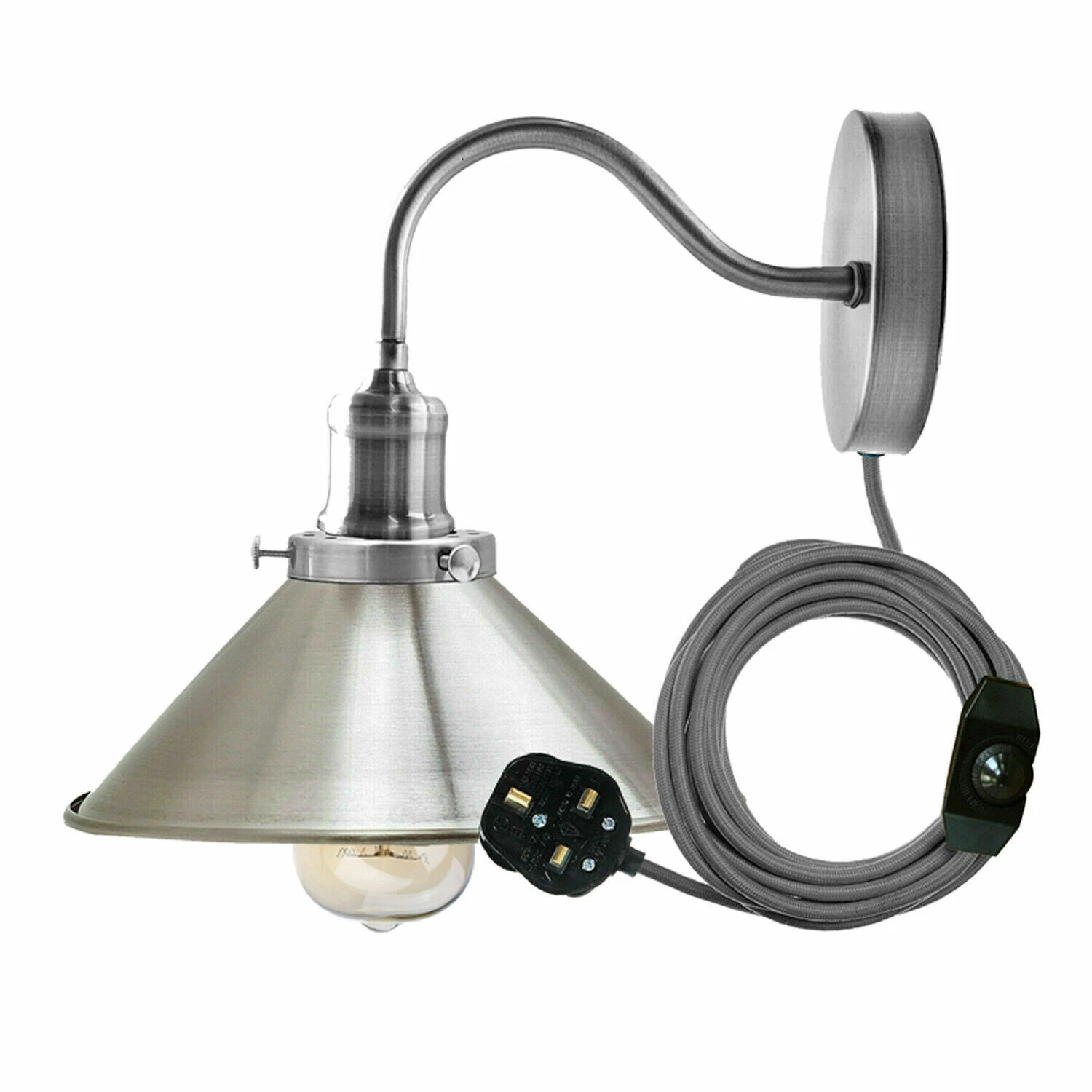 - 1 x Plug-in Wall Light Set [Light Shade, E27 Holder with Light Arm, Ceiling rose with UK plug and fitting accessories (Bulb is optional)