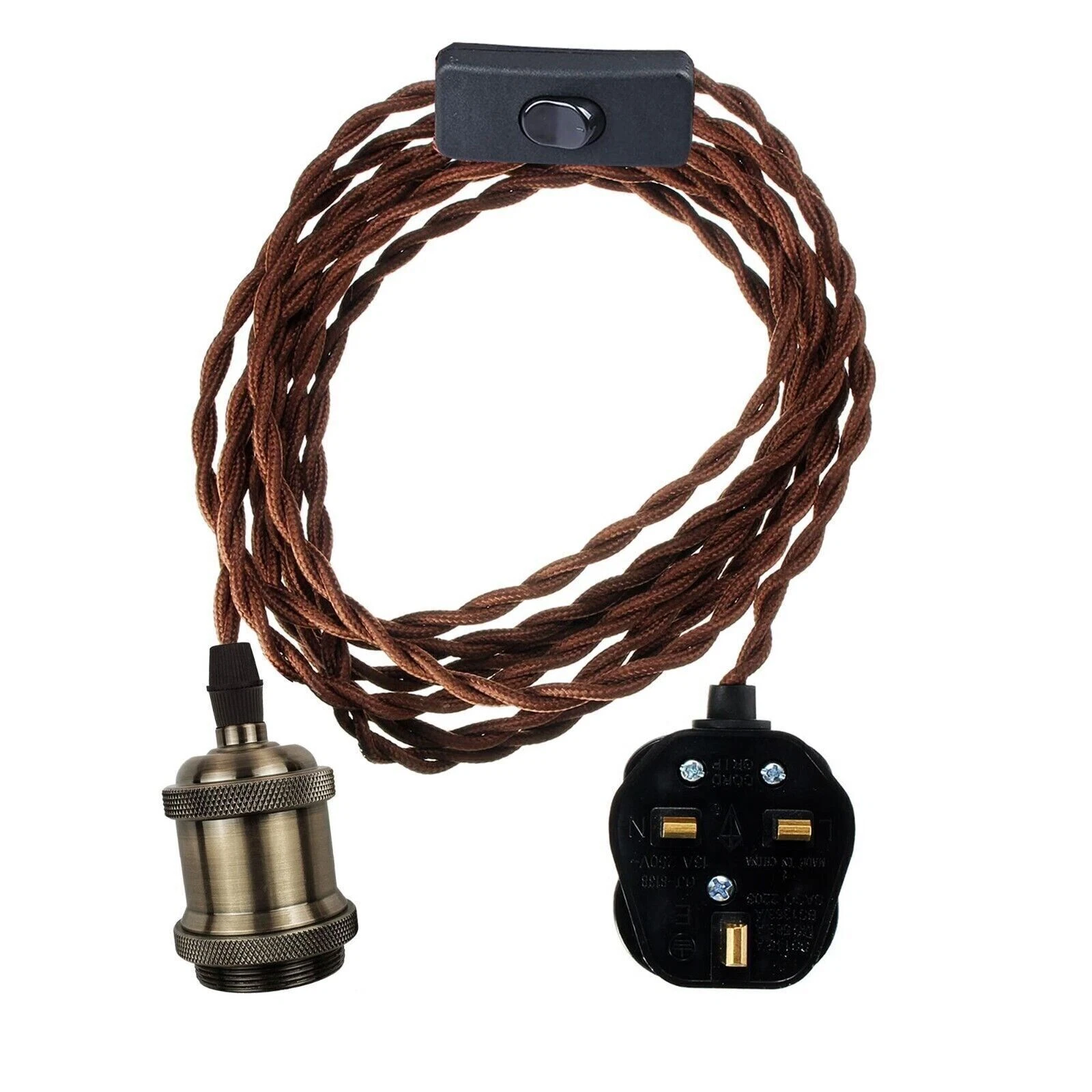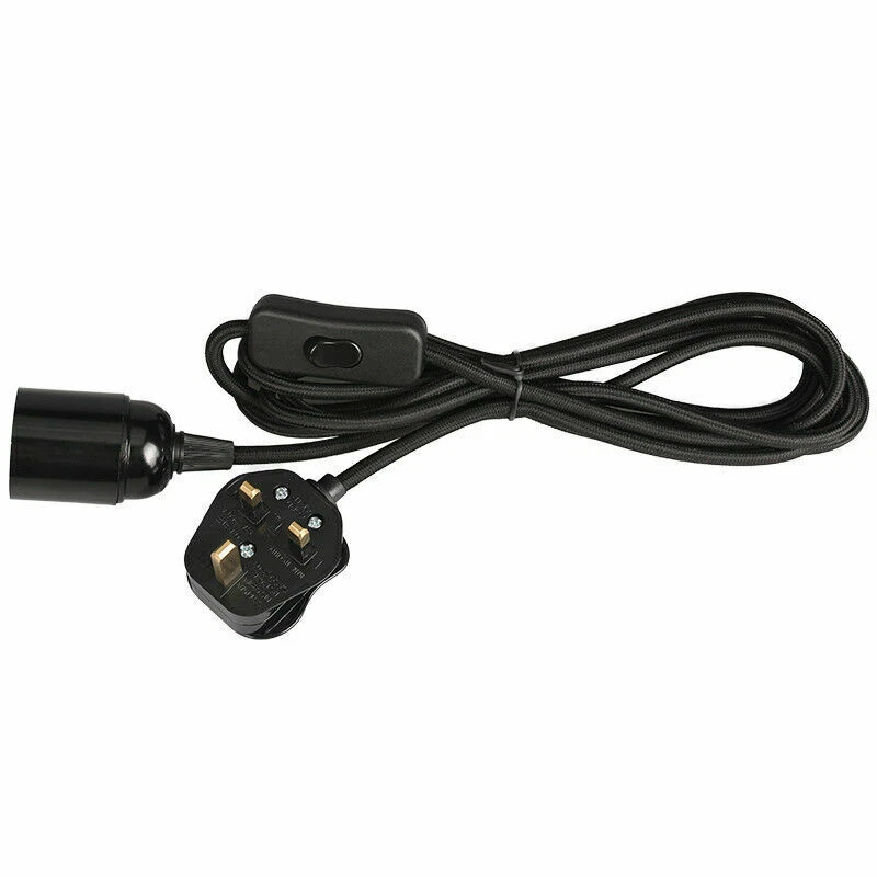 2m Fabric Flex Cable Salt Lamp Cord Plug In Pendant Lamp Light Set with on/off Switch UK