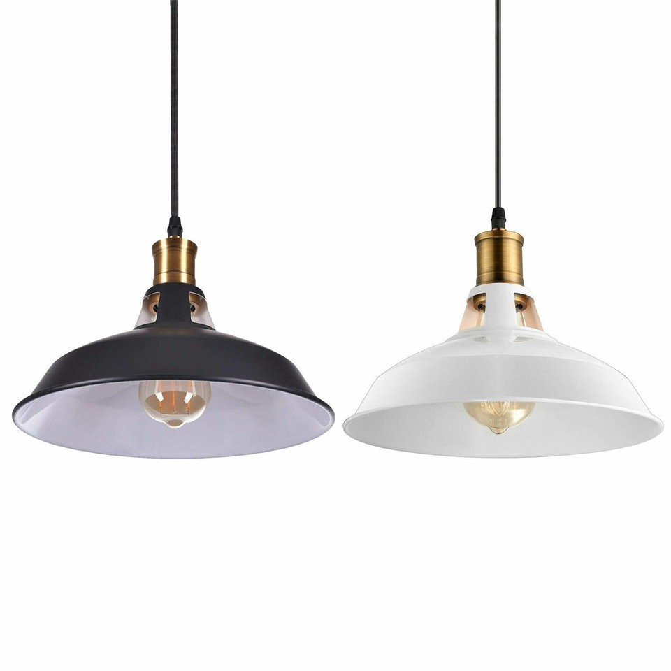 Vintage Industrial Ceiling Pendant Light Retro Loft Style Metal Lampshade Black / White Lamp Kit