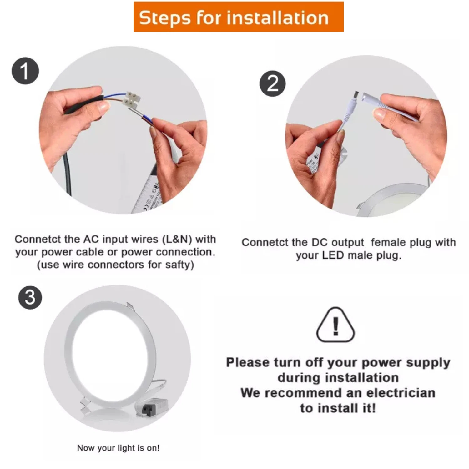 - LED Light Driver with DC female interface is used in down lamp, ceiling lamp, panel light, etc.