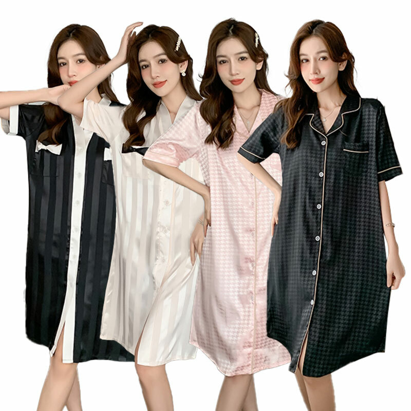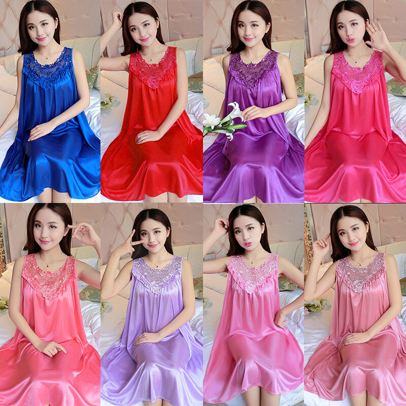 Women's Ladies Night Dress Nightgown Satin Silk Lace Lingerie Pajamas Sleepwear