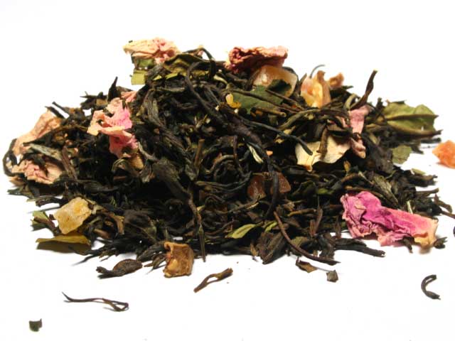 Zutaten Duftende Kostbarkeit: Weißer Tee China Mao Feng, Grüntee China Pai Mu Tan, kandierte Papayastücke (Papaya, Zucker), natürliches Aroma, Guavestücke(4%), Rosenblütenblätter