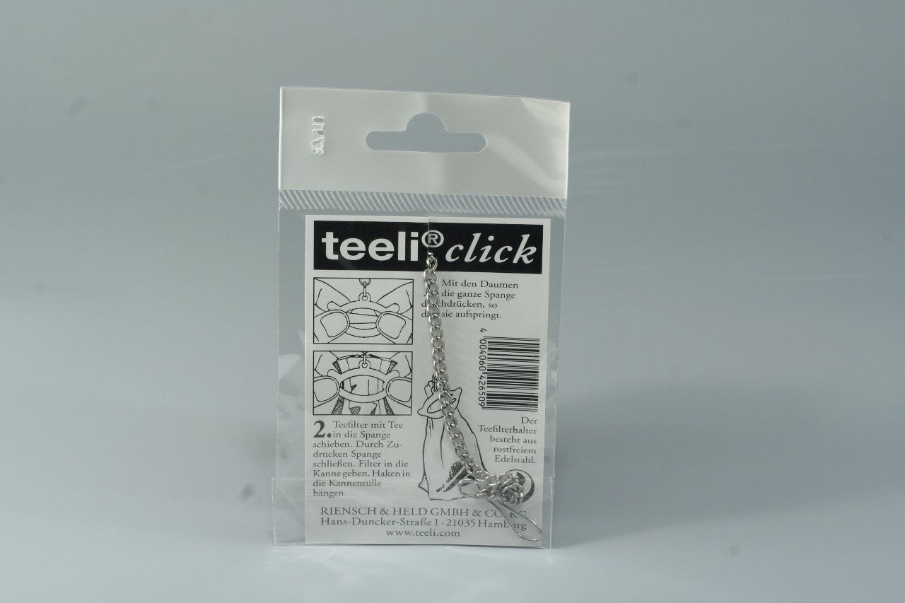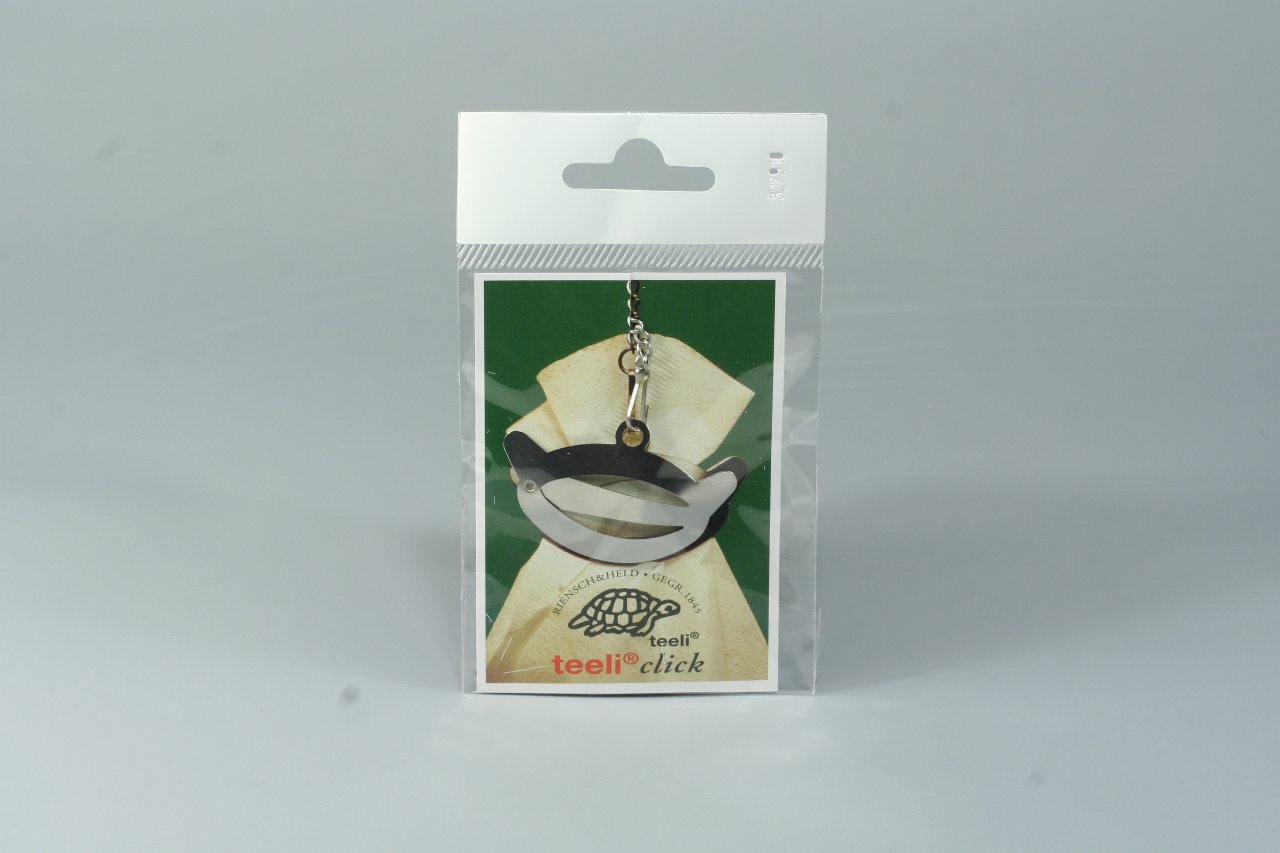 Teefilterhalter Teeli click "Original". Praktische Spange, um Teefilter zu halten. Der Halter ist aus rostfreiem Edelstahl gefertigt.