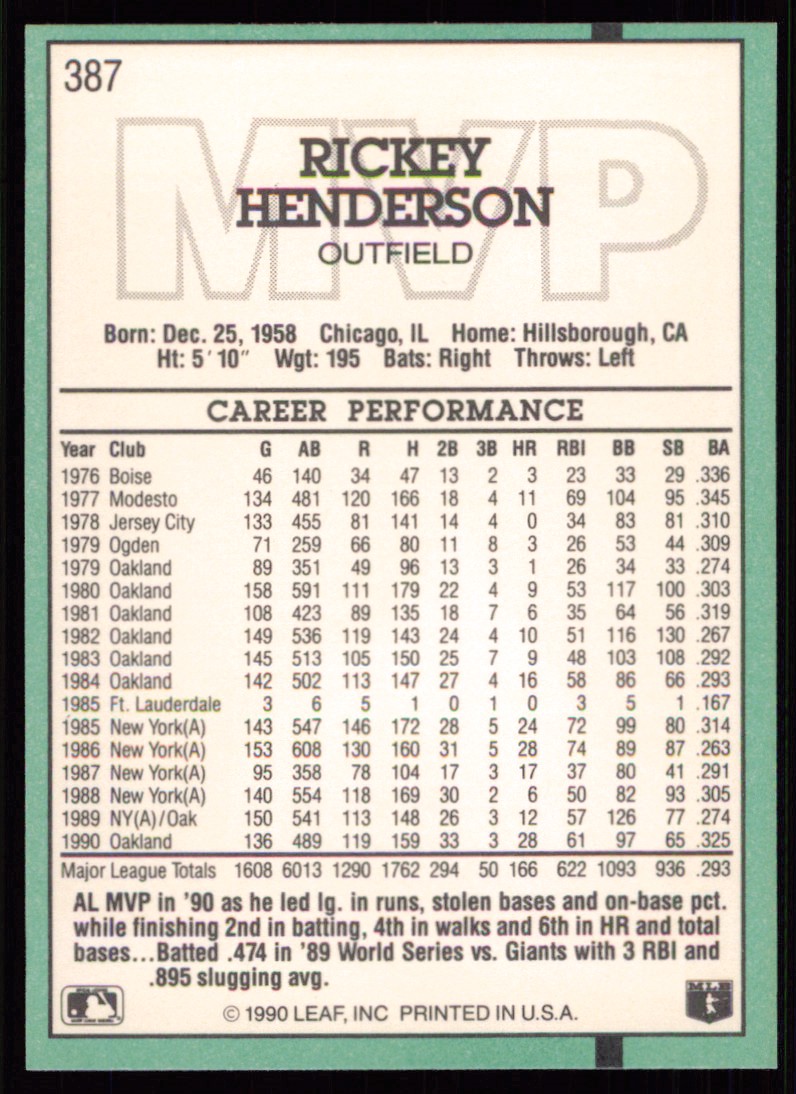 | 1991 Donruss 387 Rickey Henderson No period ERROR |