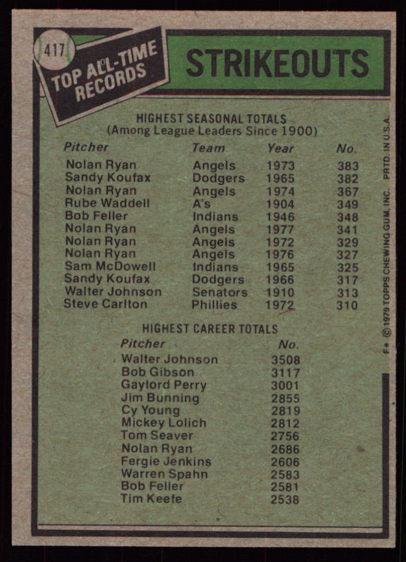 | 1979 Topps 417 All-Time Strikeout Records - Nolan Ryan/Walter Johnson |
