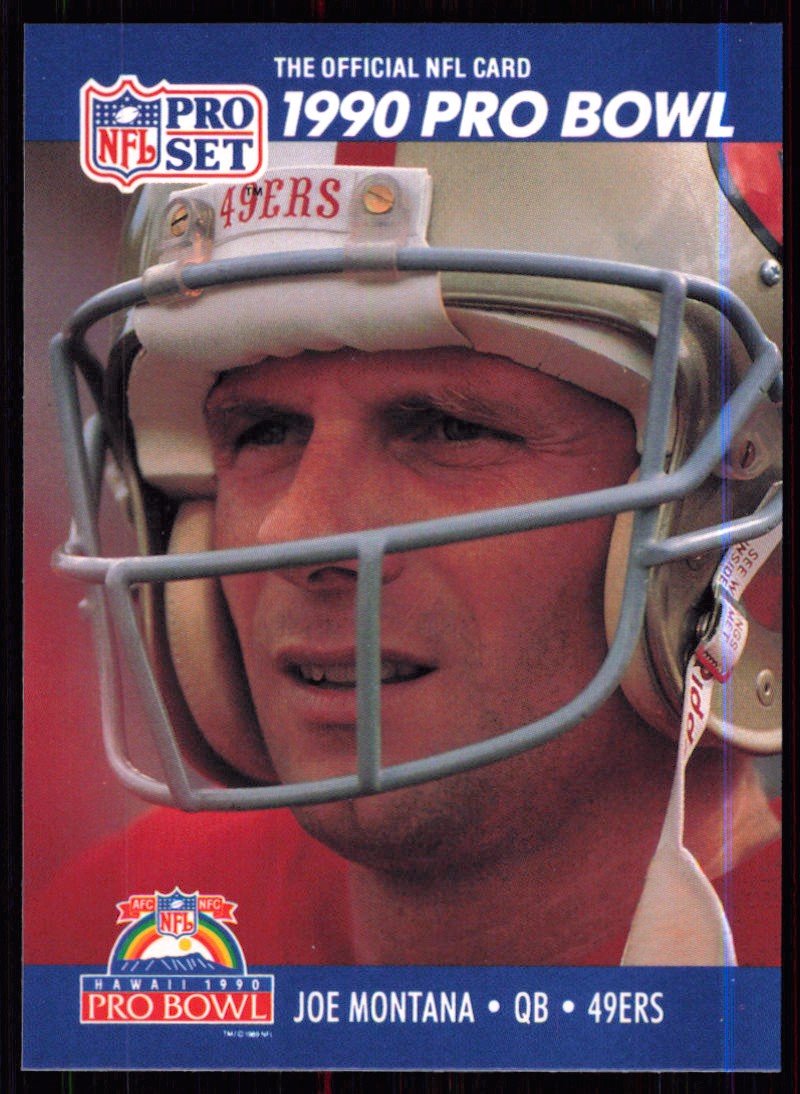 | Description: | Joe Montana | | Category: | Football | | Year: | 1990 | | Product: | Pro Set | | Team: | San Francisco 49ers | | Card Number: | 408 | | Dimensions: | 3½" x 2½" |