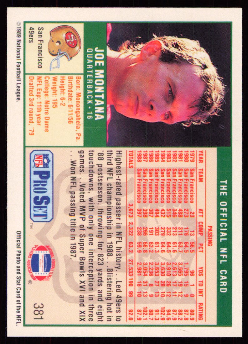 | 1989 Pro Set 381 Joe Montana |