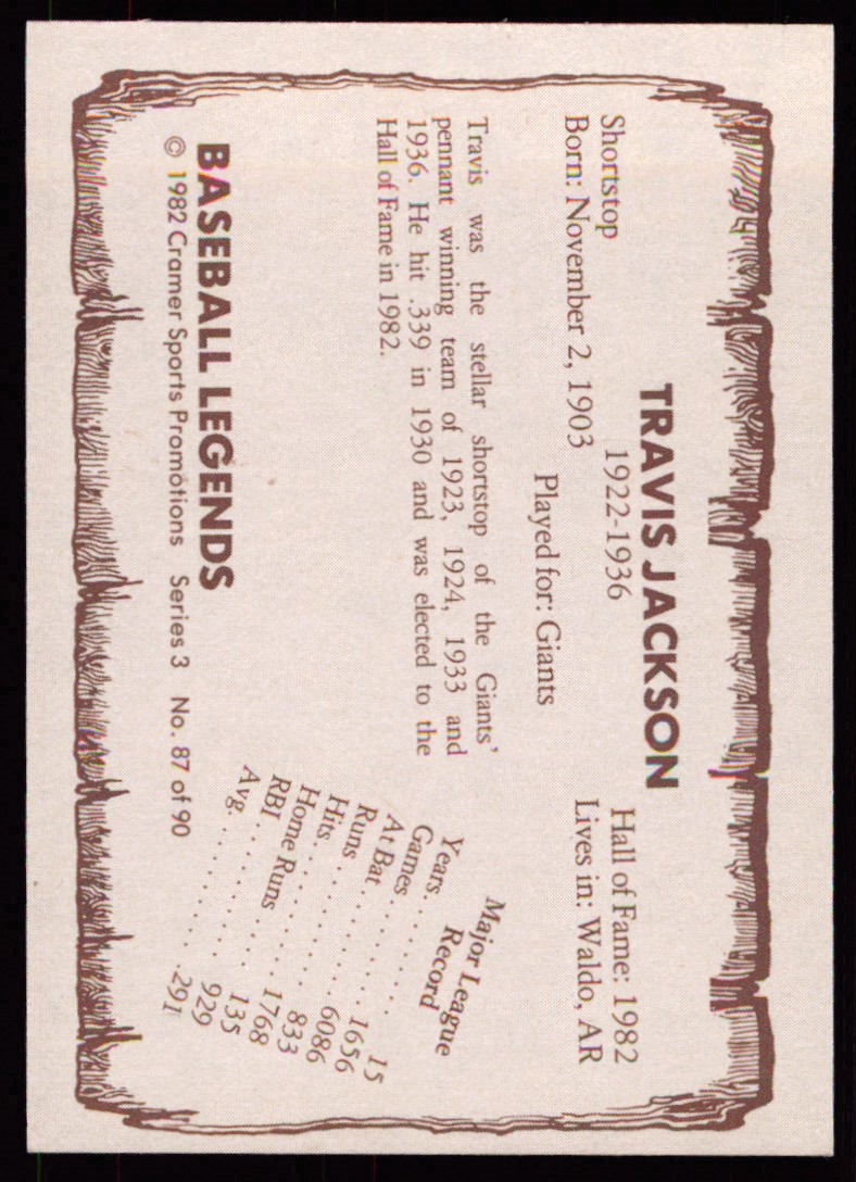 | 1982 Cramer Baseball Legends Series 3 87 Travis Jackson |