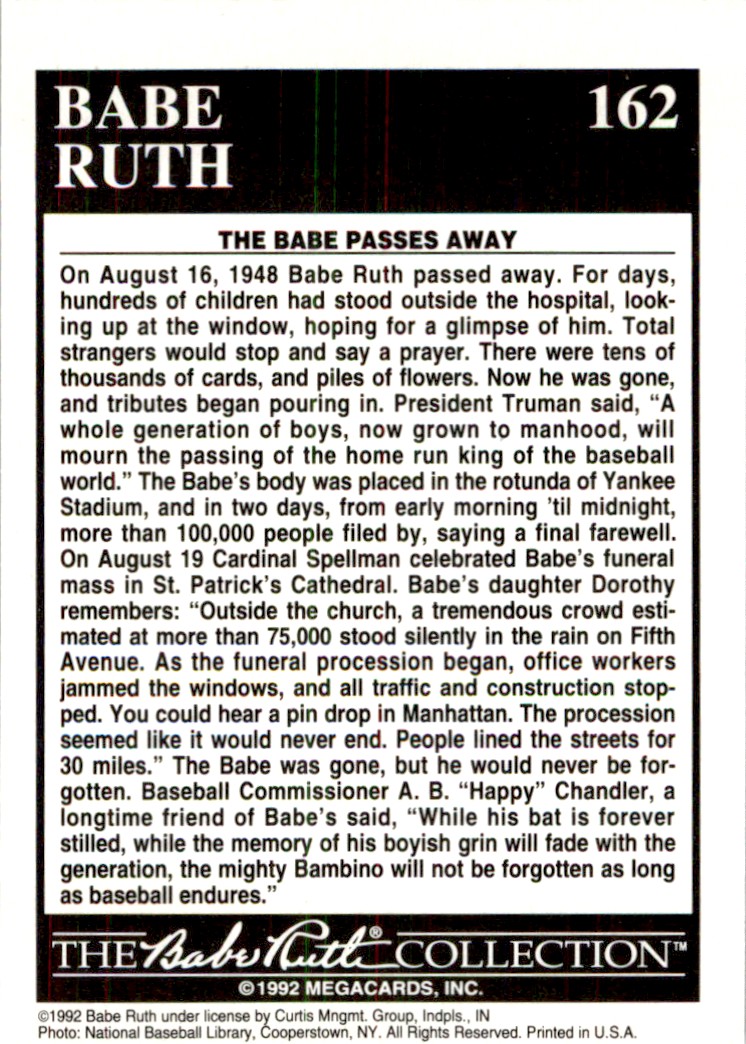 | 1992 Megacards Babe Ruth 162 Being Remembered Heading for Home The Babe Passe |