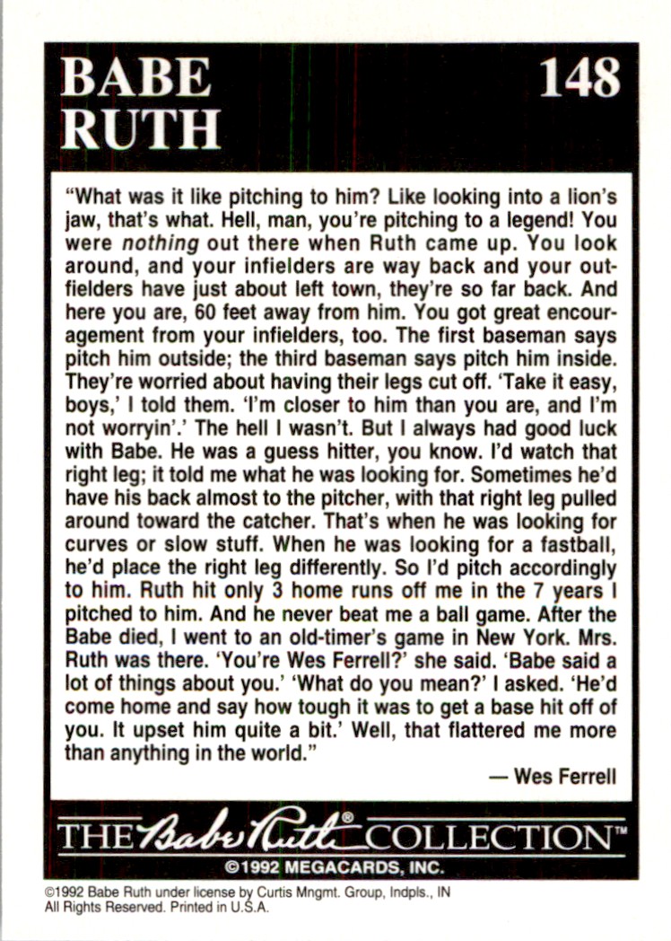 | 1992 Megacards Babe Ruth 148 Being Remembered by Wes Ferrell |