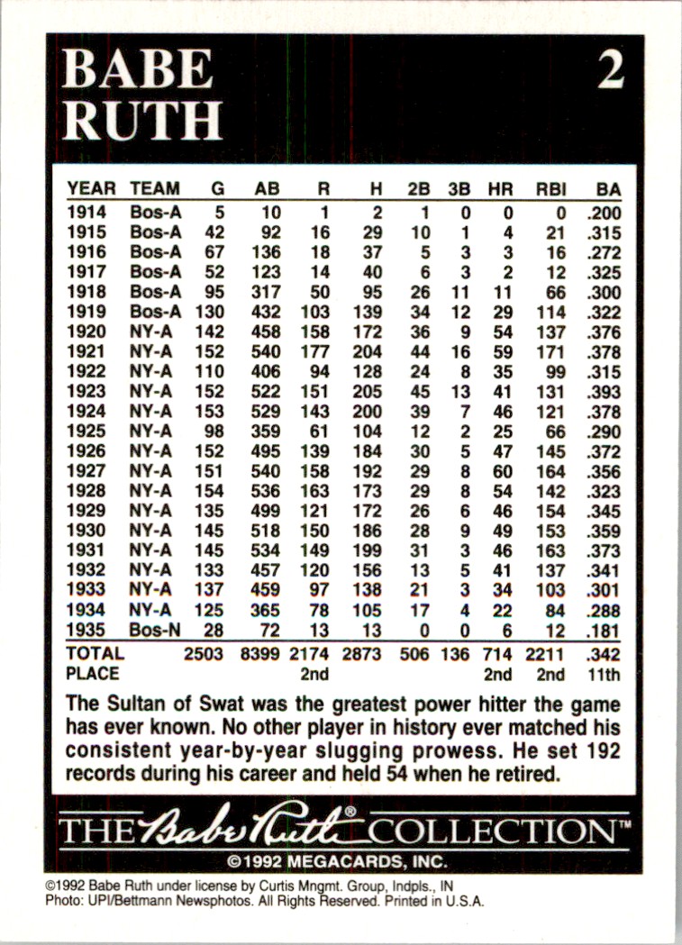 | 1992 Megacards Babe Ruth 2 Babe Ruth |