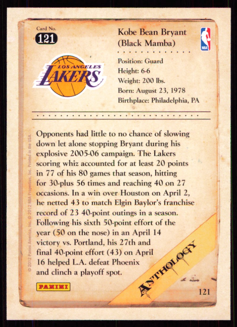| 2012-13 Panini Kobe Anthology 121 Kobe Bryant |