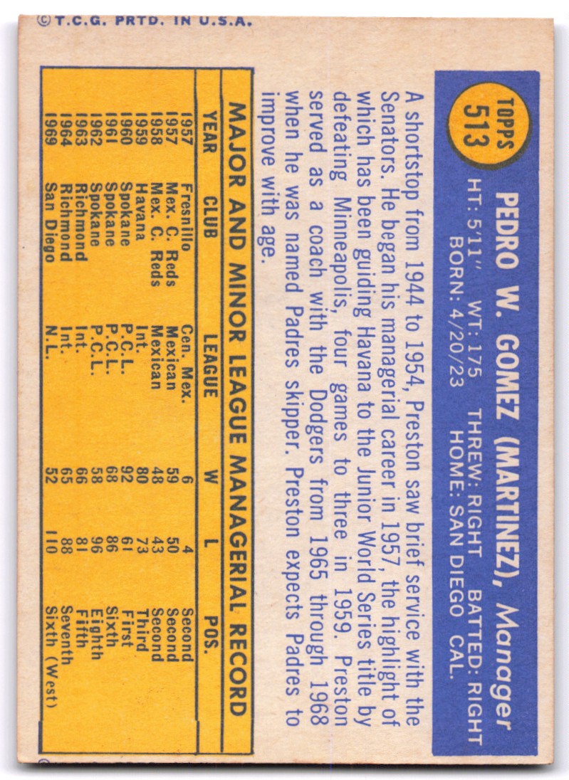 | 1970 Topps 513 Preston Gomez |