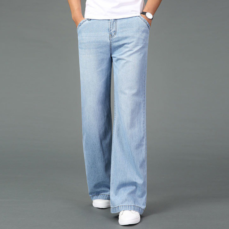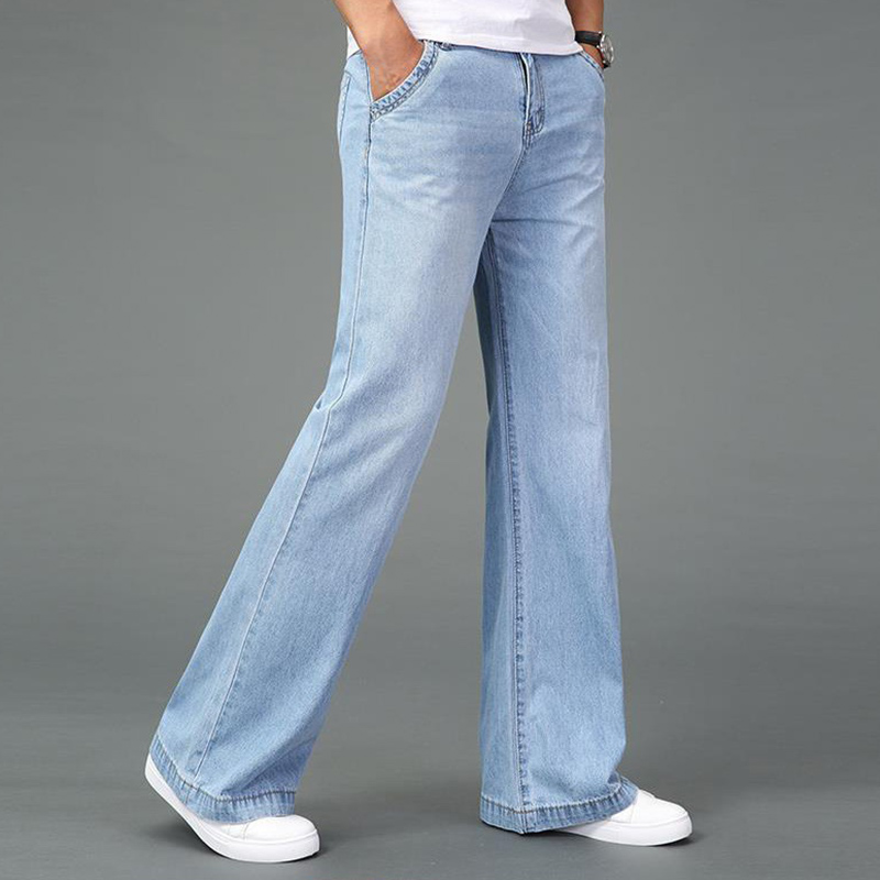 Mens Wash Denim Bell Bottom Jeans Flared Pants