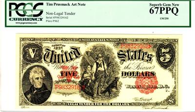 Just before his death, Prusmack was wanted for the coveted and unique position as a money designer for the U.S. Bureau of Printing and Engraving. Just before the surgery that resulted in his death, he eagerly looked forward to this role. Prusmack's legacy to the art world and numismatic world is unique. In addition, Prusmack created beautiful cover art and posters for many numismatic organization. He supported youth in numismatic activities.