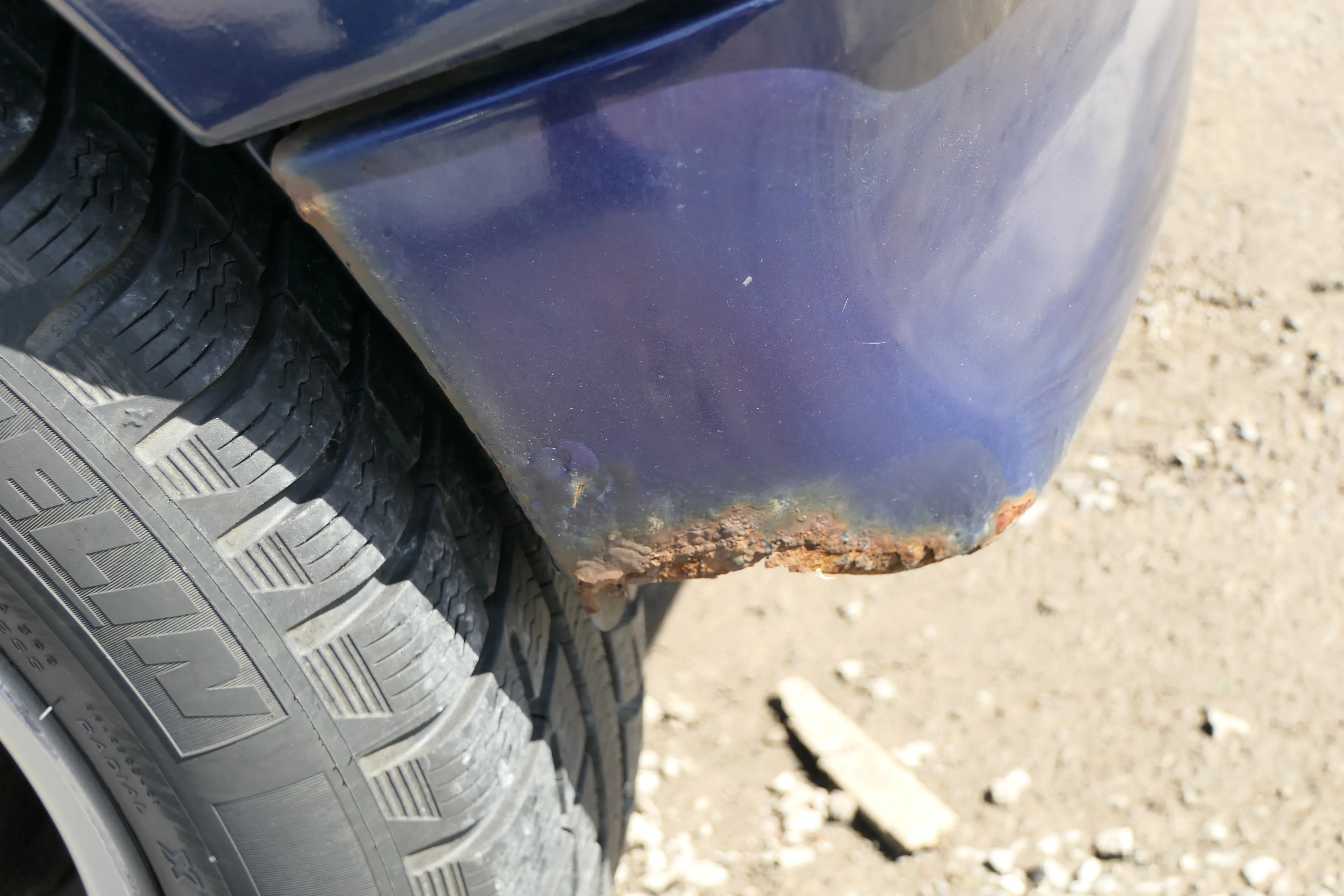 VW Polo 6N Stoßstange hinten nur Oberteil 2-geteilte Heckstoßstange blau LB5N