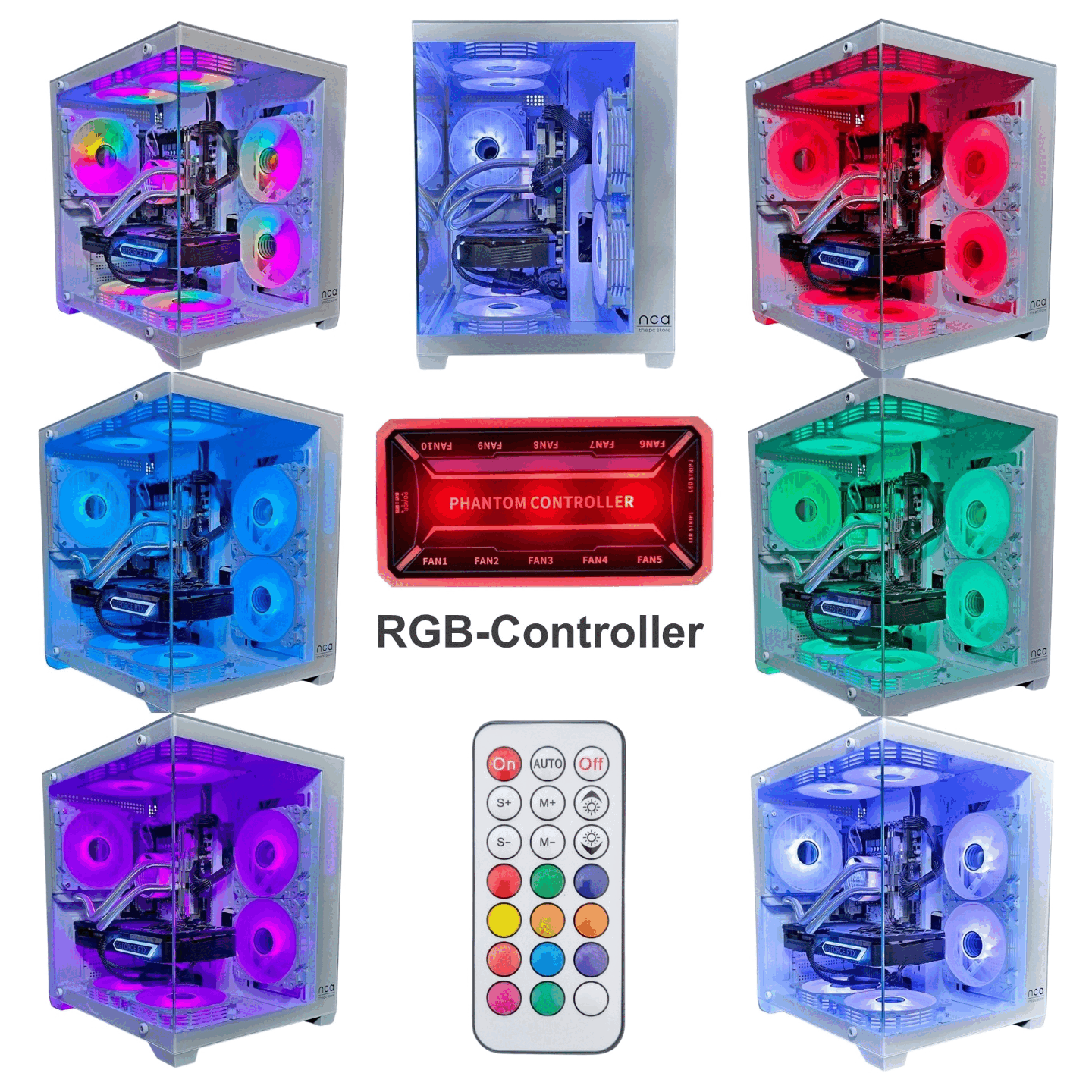 Durch den optionalen RGB Controller wird das System optisch massiv aufgewertet. Die RGB Effekte, dynamischen Leuchteffekte und Lüftergeschwindigkeit können über die mitgelieferte Fernbedienung eingestellt werden. Dadurch stehen 12 Farben und 18 dynamische Leuchteffekte zur Verfügung! Die Kombination aus Gummilagerung zur Vibrationsreduktion und steuerbaren Lüftergeschwindigkeit sorgen für einen kaum zu hörenden Geräuschpegel von 20dBA.