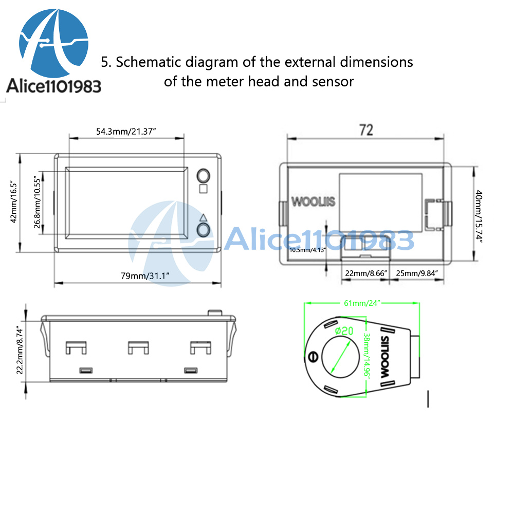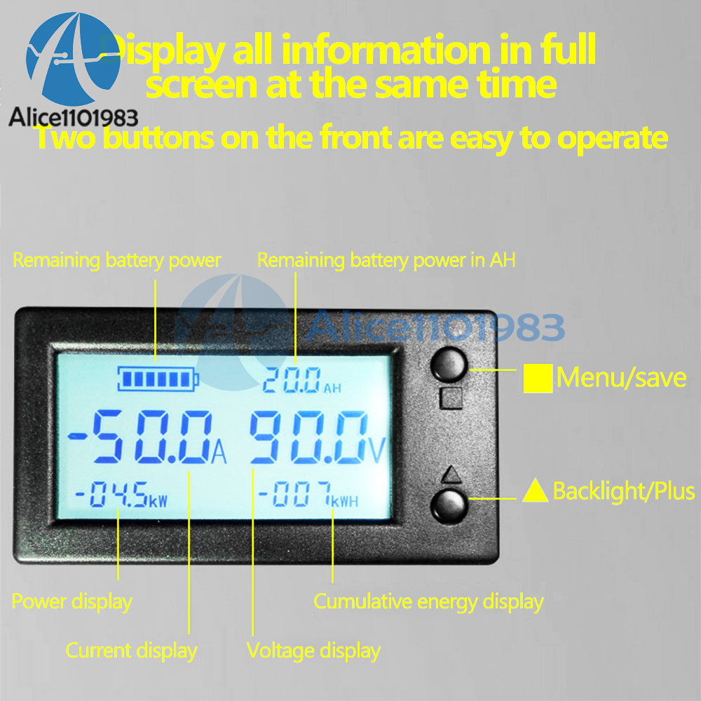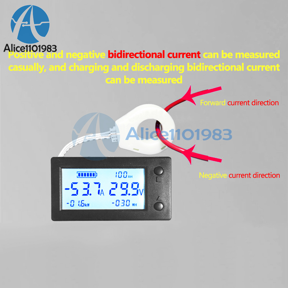 Description:This is our brand new STN LCD Hall Coulomb Meter, Battery Coulomb Meter. The coulometer with hall sensor can be installed very easily. No need to consider the problem of power supply and common ground. Because hall measurement is an isolated measuring way, which will not damage the original line, and is N times safer and more reliable than a general shunt coulomb meter.With STN full-view LCD screen, readings can be clearly shown indoors, outdoors, during the day and night, which can completely avoid the disadvantages of digital tube under the sun. All information is displayed simultaneously in full screen. It is a real remaining capacity meter that displays voltage, current, power, electricity, and electric energy. Suitable for all kinds of storage batteries, lead acid, polymer lithium batteries, lithium iron phosphate and other batteries. It is highly recommended for users.Functions:1. Measure remaining battery percentage (indicated by the grids in battery icon) and remaining battery capacity AH.2. Measure DC positive and negative bidirectional current.3. Measure DC voltage.4. Measure DC positive and negative power.5. Measure cumulative electric energy in both DC positive and negative directions.6. Over-voltage alarm flashing function. Alarm voltage parameter can be set by yourself.7. Low-voltage alarm flashing function. Alarm voltage parameter can be set by yourself.8. Over-current alarm flashing function. Alarm current parameter can be set by yourself.9. Low battery remaining capacity alarm. The battery icon will flash continuously, prompting users to charge.10. When charging, the battery icon running light scrolls.11. Automatically fill battery capacity at full voltage.12. Clear current function.13. Clear the accumulated electric energy.14. Backlight can be turned off or on manually.15. Power-down data saving function. Battery power and accumulated electric energy are automatically saved when power-off.16. Hall sensor isolated measurement enables safe, reliable, easy, and simple installation.17. Using STN full-view LCD screen, no dead angle of 360 degrees. With backlight, it can be clearly visible under direct sunlight, no matter it is used at night, in daytime, indoors, or outdoors.18. Ultra-wide power supply voltage range: DC5-90V.Package Included:- 1 x Meter- 1 x Hall Sensor- 1 x Sensor Cable- 1 x Power Cord FAQ:- Q1: Is it visible under the sunlight?- A1: Yes. With STN LCD display and backlight, it is visible during the day and night.- Q2: Do you need an extension cable?- A1: The standard sensor extension cable is 15CM in length. If you need to extend it, you can buy our shielded extension cable. (Note: This STN LCD Hall coulometer can only use our shielded extension cords instead of ordinary extension cords)- Q3: Is hall sensor included in the package?- A3: Yes, it is. You will get STN LCD meter + Hall sensor + 15CM sensor cable + 15CM power cable.- Q4: Does this meter use a two-wire or three-wire system?- A4: When the measuring voltage of the meter is within DC5-90V, connect red and yellow wires together as the positive lead connected to the positive pole of power supply. Black wire is connected to the negative pole. So this is a two-wire connection. When the measured voltage exceeds the DC5-90V range, a three-wire system is used. This allows a wider measurement voltage range. It can measure ultra-wide voltage between DC0 ~ 300V.- Q5: Is paper instructions included in the package?- A5: No. To protect our environment, paper instructions is not enclosed. Users can follow our instructions below.Using Steps:1.Wiring: Connect correctly. When discharging, the coulomb counter shows a positive current. The coulometer displays a negative current while charging. If not, it means that your sensor is in reverse connection, and you can rewire the sensor.2.Parameter Settings: Set the parameters. The two parameters of the battery's rated capacity AH and the automatic full-charge voltage FU must be set. If the newly installed good coulomb counter is not zero at no load, it needs to be cleared at no load.3.After wiring and setting parameters, the meter will not display the battery capacity immediately. At this time, the battery icon and capacity are still empty. You need to fully charge your battery to display the remaining capacity normally.