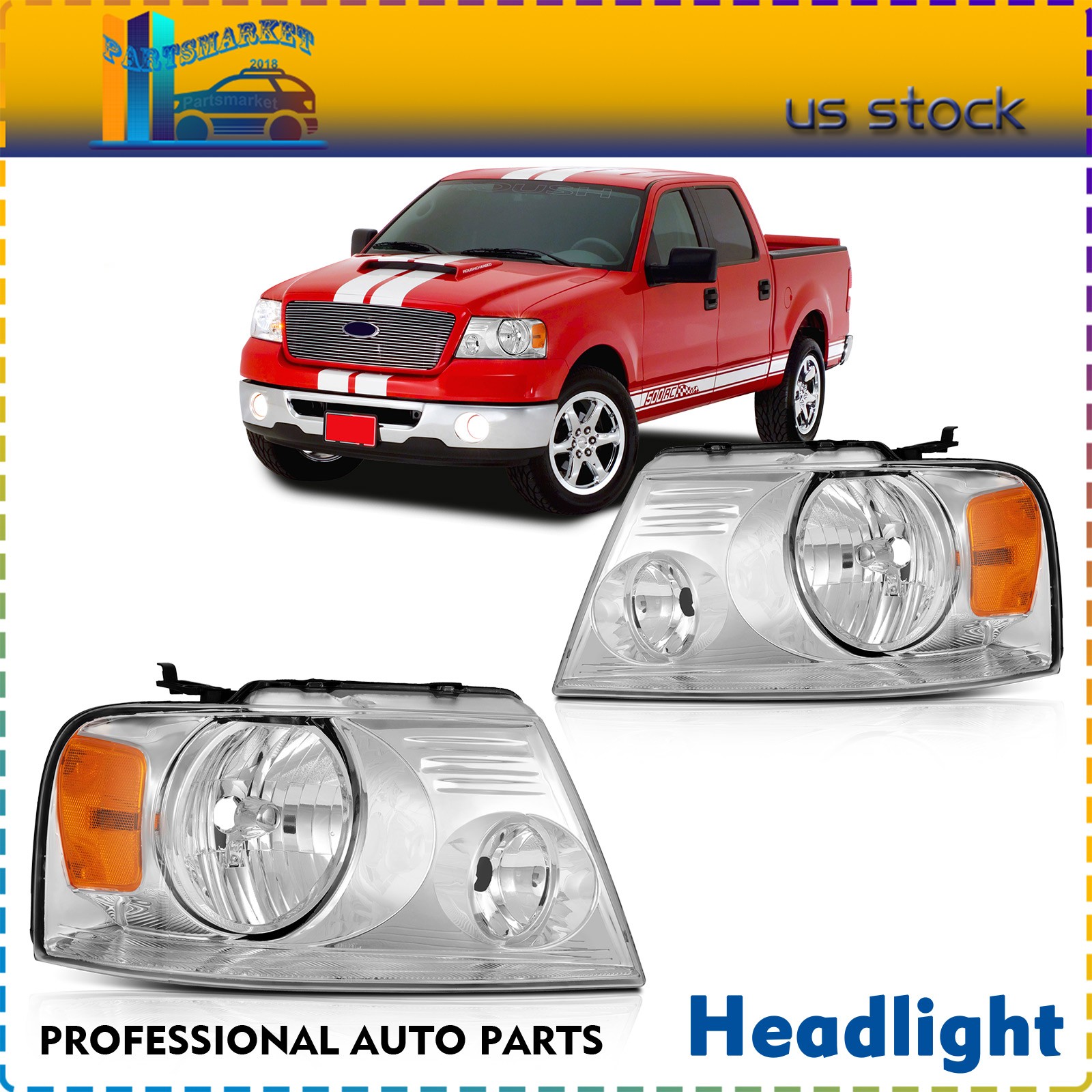 Fits 2004 2005-2008 Ford F-150 LH+RH Side Pair Headlights Assembly Chrome+Clear