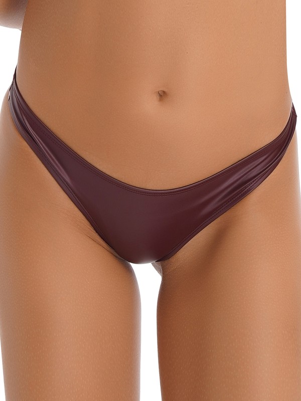Damen Low Rise PU Leder Tanga Unterwäsche einfarbige Slips Höschen.