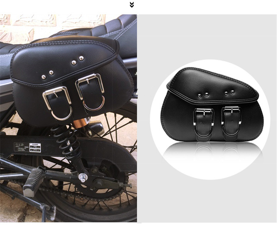 Universal Mini Pair Motorcycle PU Leather Side Saddle Luggage Bags Metal Buckle