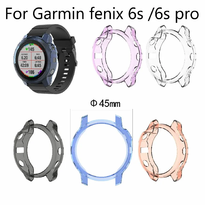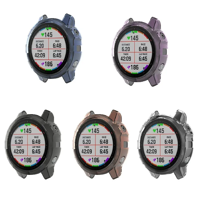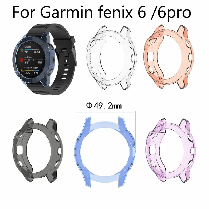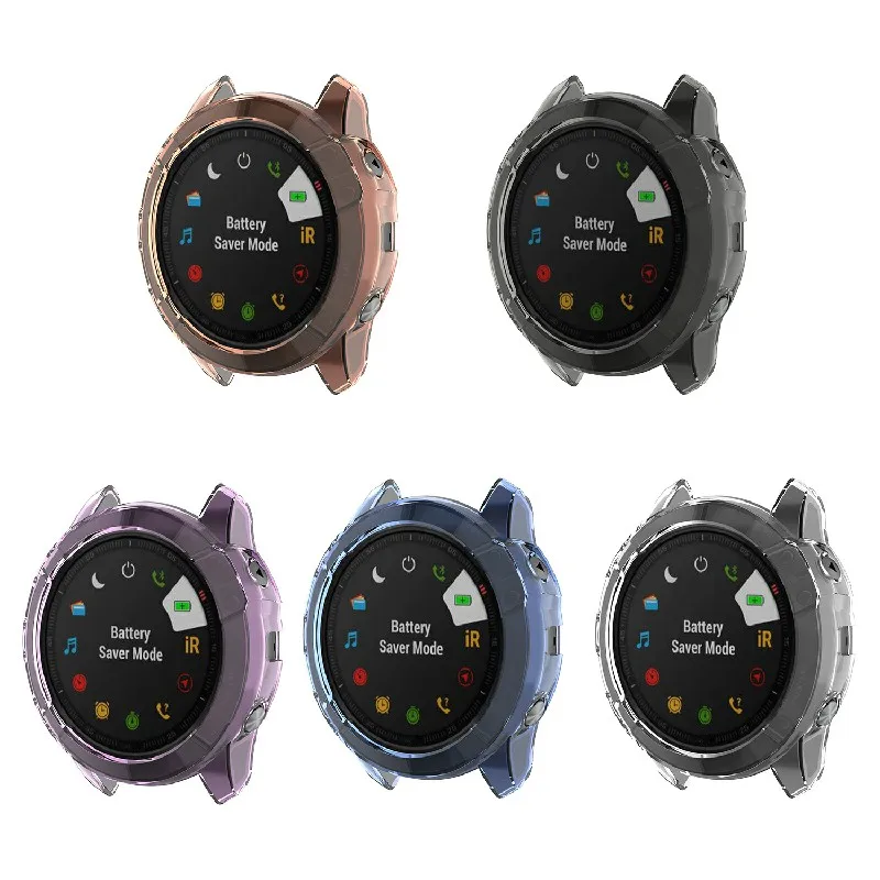 Clear Protective TPU Case for Garmin Fenix 6 Fenix 6X 6S Pro Soft Cover Anti Drop Bump Frame Transparent Black Purple Covers