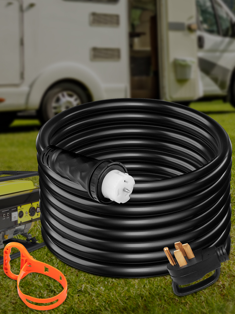 Thegenerator cord 50 amp is secure for use with plug adaptors andextenders. You can use our cord to connect to a generator. And it isperfect for camping, tailgating, outdoor and sporting when meethurricane season, and other bad weathers.