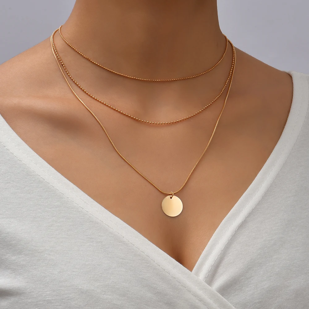 Gold Triple Layer Circle Pendant Necklace