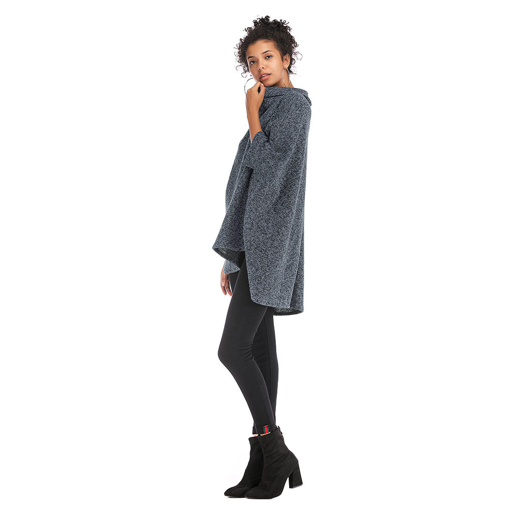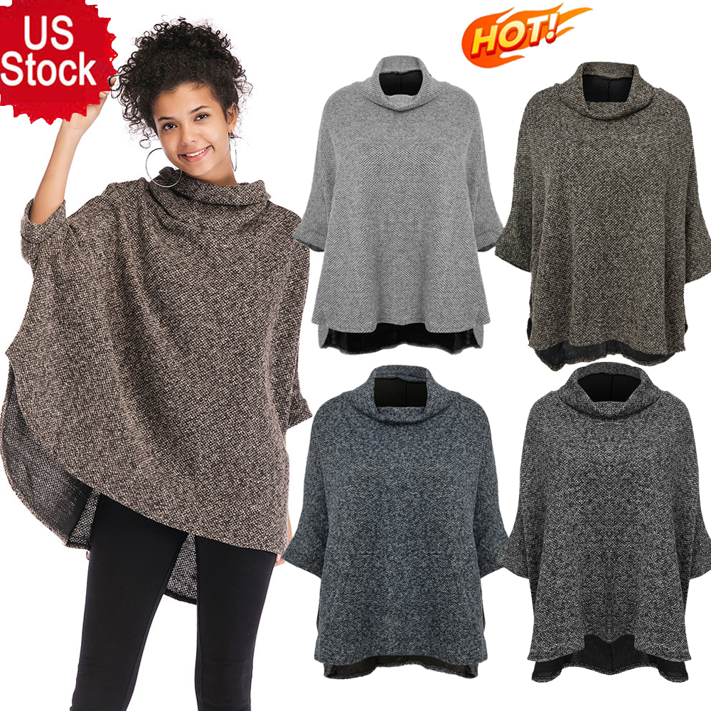 Women Pullover Sweater Cardigan Poncho Batwing Shawl Cape Long Sleeve Cloak US