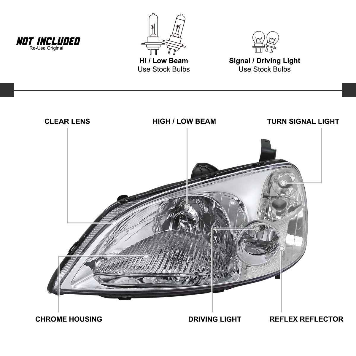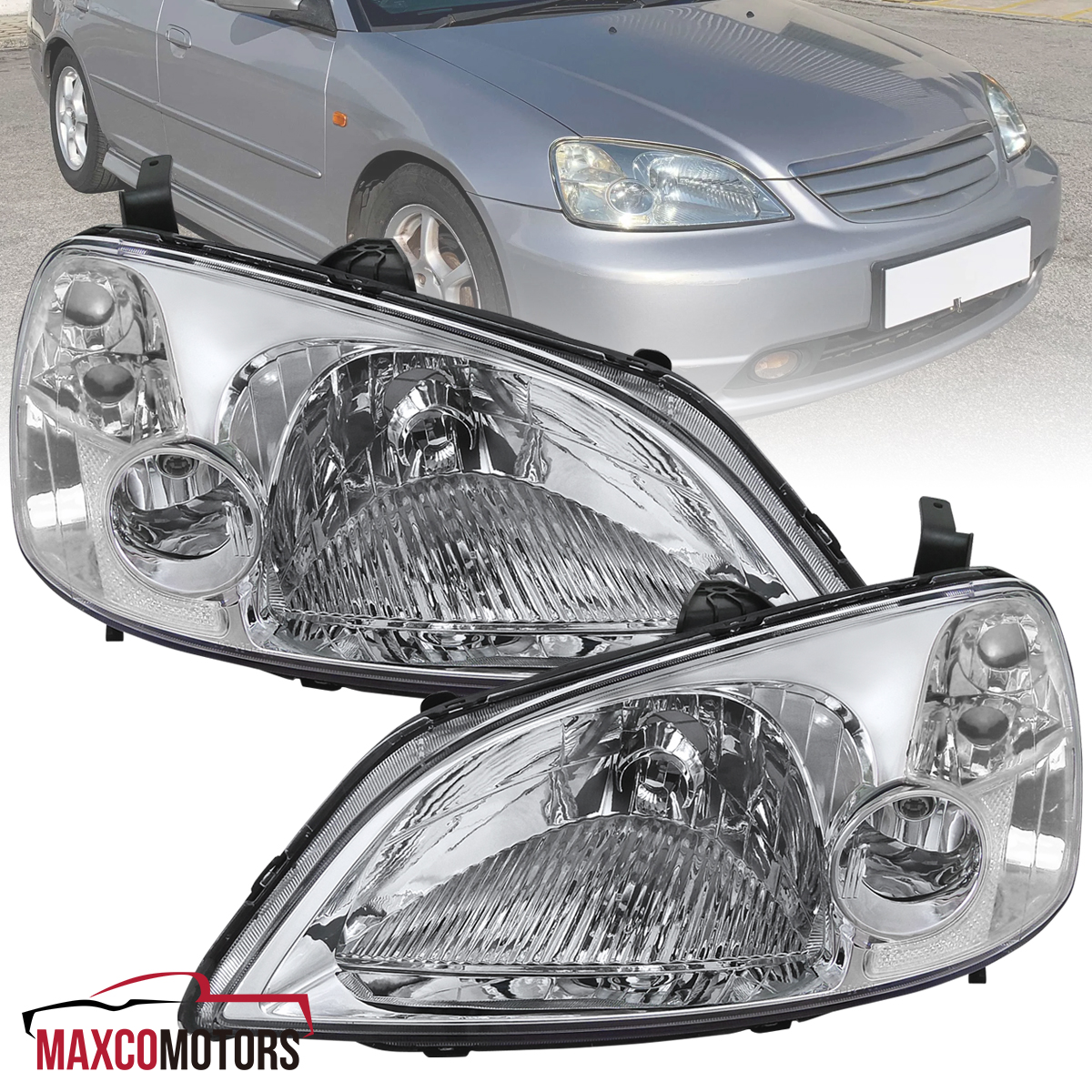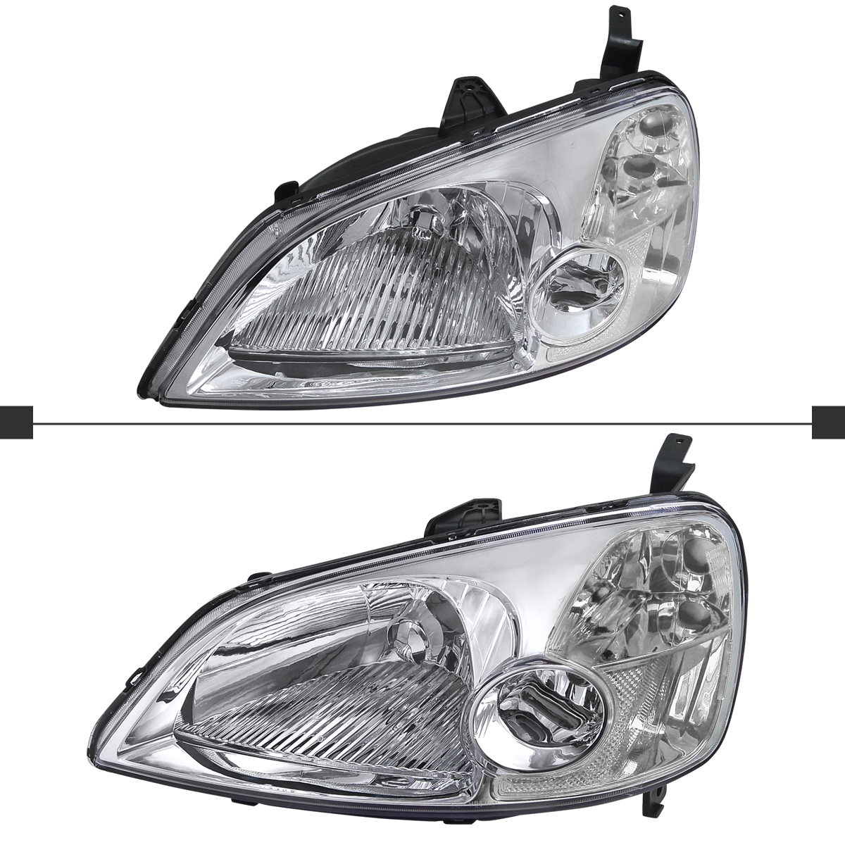 Headlights Fits 2001-2003 Honda Civic 2/4Dr Coupe Sedan Clear Lamps Left+Right
