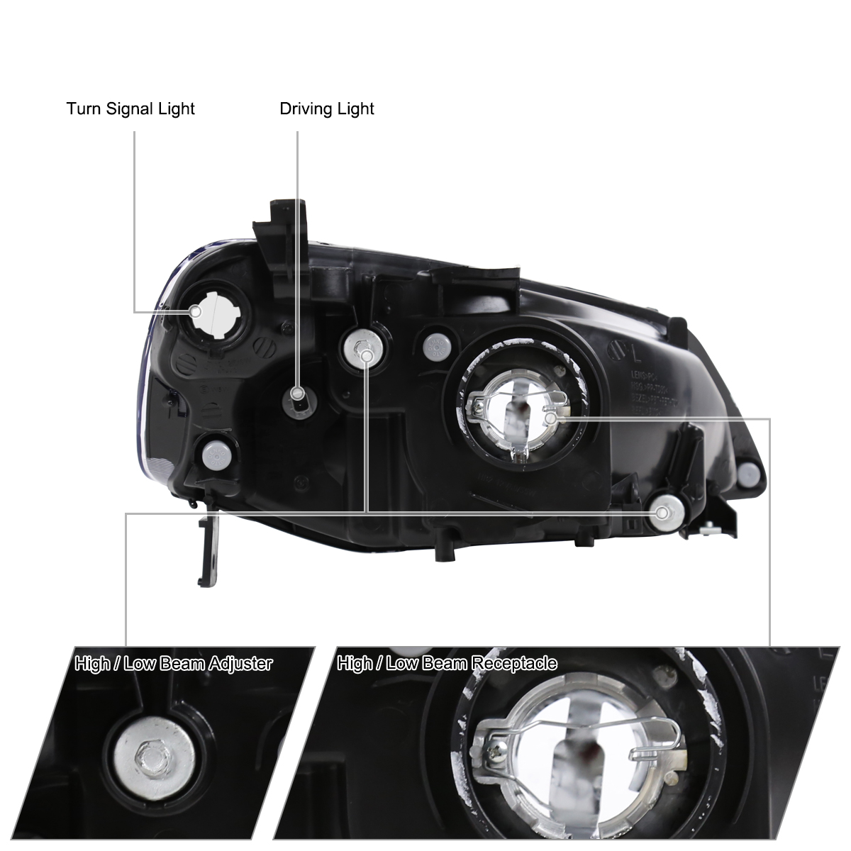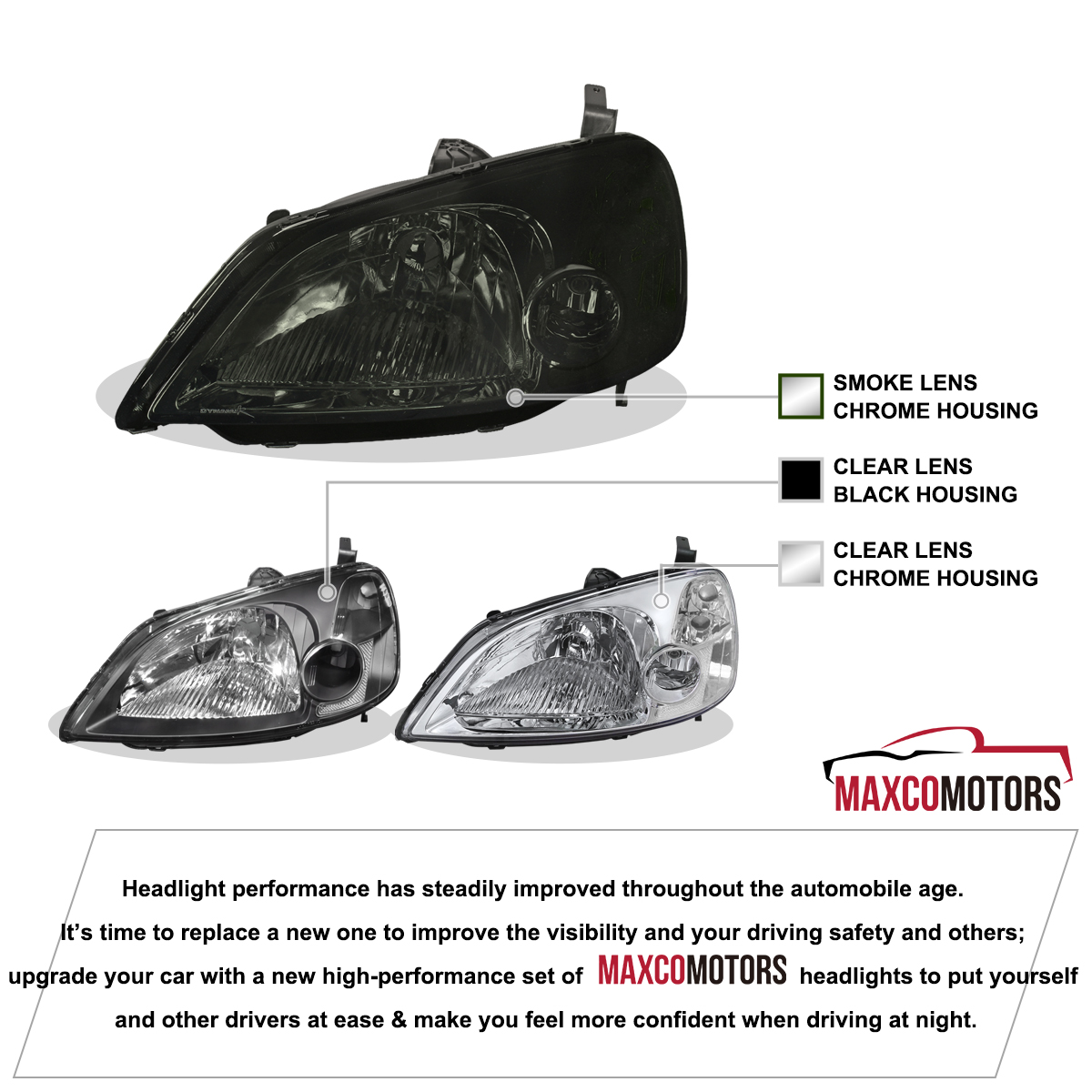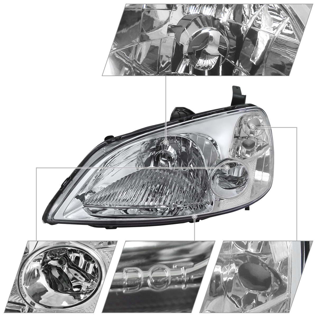 Headlights Fits 2001-2003 Honda Civic 2/4Dr Coupe Sedan Clear Lamps Left+Right