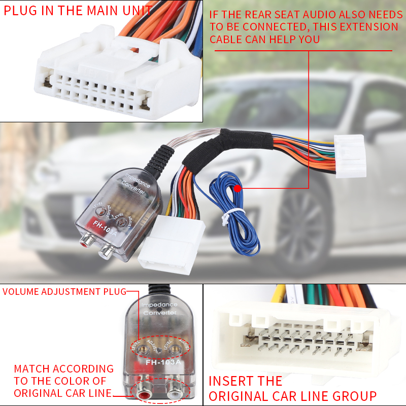 • Audio volume to the amplifier can be adjusted by the dials on the harness. For easier access we recommend using an external volume knob.(Not included)