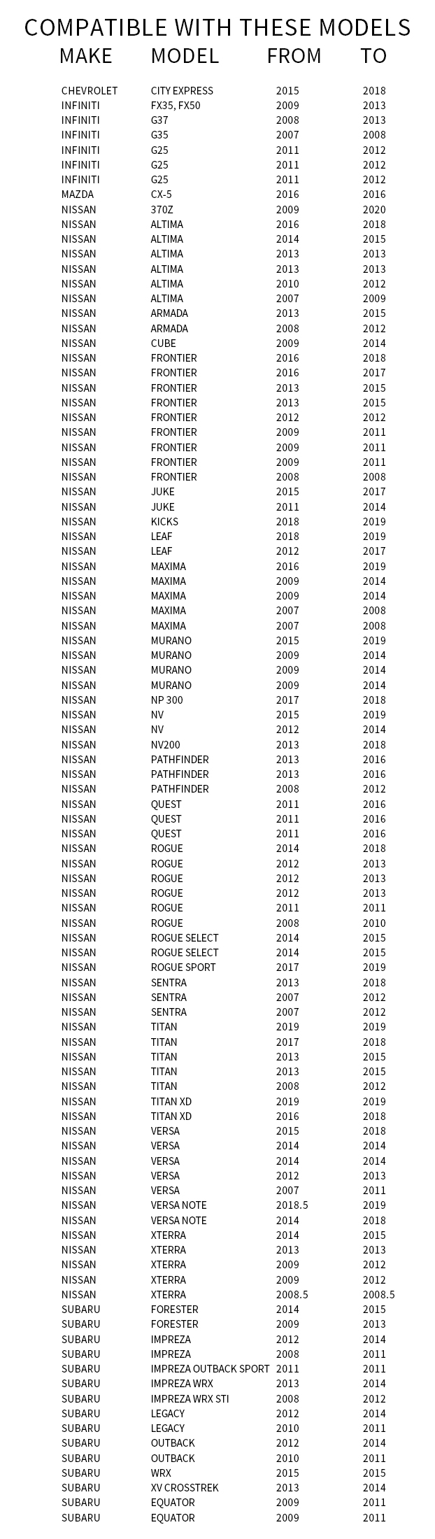 | Xterra | 2008.5 | 2008.5 |