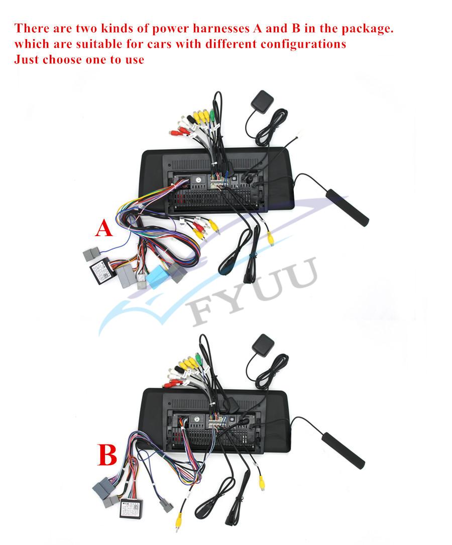 | There are two kinds of power harnesses in the package, which are fit for different configurations. Please select one to use. It should be noted that :the two kinds power harnesses use one canbus box (small black box). Don't forget to plug the canbus box. | |
