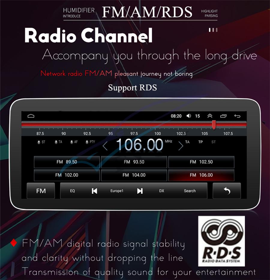 Radio | - FM Tuning Range: 87.5-108MHz - FM Increment: 0.05MHz(EU)/0.1MHz(US) - FM Area: Europe/USA1/USA2/Japan/Russia... - AM:Yes - RDS:On/Off |